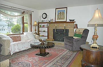 - Living Room with Brick Fireplace with Woodstove insert